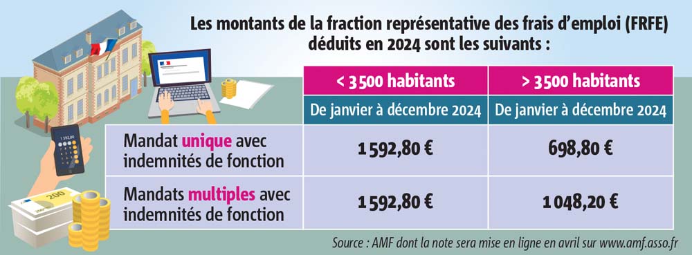 Pour déterminer le montant mensuel imposable de l’indemnité de fonction, il convient donc de déduire du montant brut perçu une somme forfaitaire spécifique : la «fraction représentative des frais d’emploi » (FRFE).