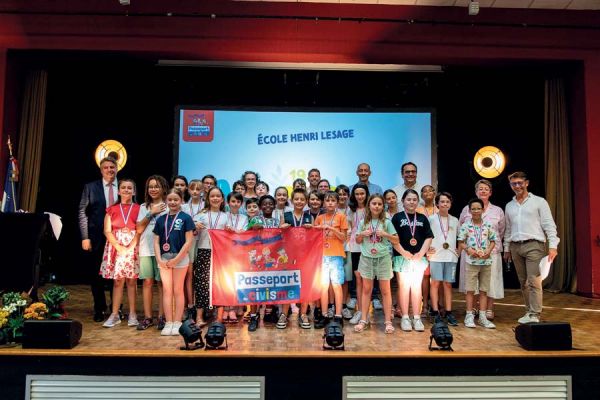 En présence du maire, Rodolphe Amailland (à gauche), la ville de Vertou (44) a récompensé, en juin dernier, des élèves de CM2 pour leur participation au Passeport du civisme. Ils se sont en effet impliqués dans des actions solidaires, citoyennes ou éco-responsables.