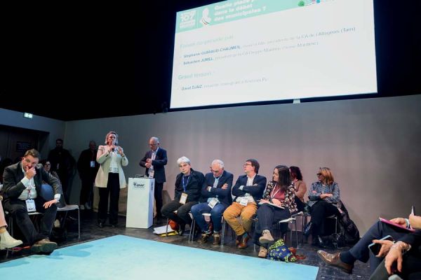 Selon Stéphanie Guiraud-Chaumeil, maire d'Albi (81) et présidente de la communauté d'agglomération de l'Albigeois (au micro), « l'échéance municipale (...) doit être le temps de la stabilité et de la confiance entre communes et EPCI. »